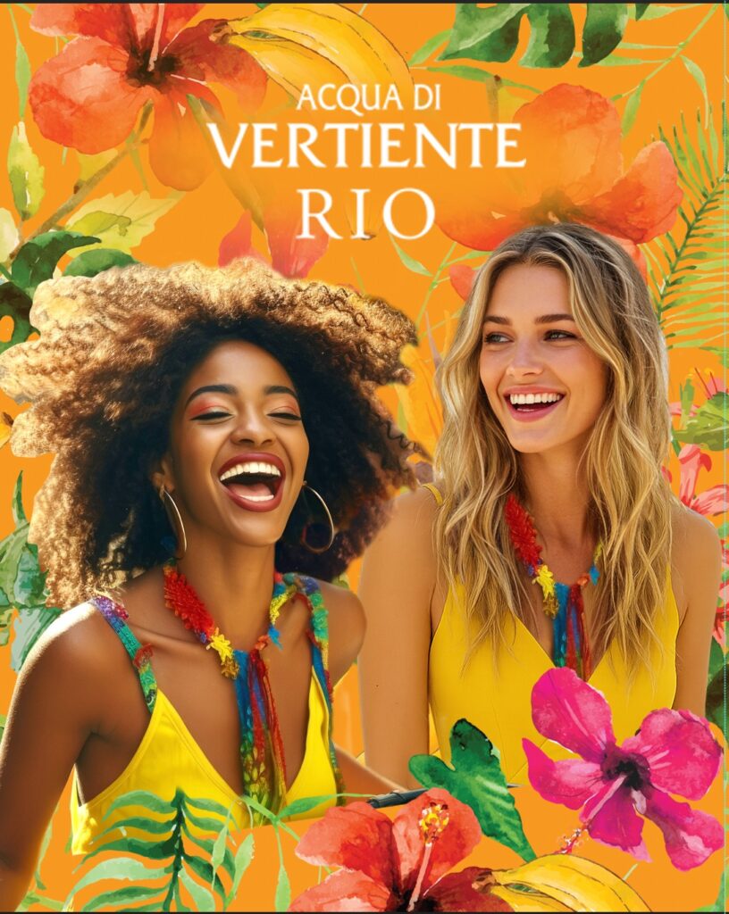 * Eau de toilette, una fragancia envolvente por la energía vibrante de RIO, femenina, que captura la alegría despreocupada de una tarde bajo el sol tropical. Su apertura chispeante mezcla limón, verbena y mandarina con el toque frutal y jugoso de durazno, ananá y banana. En el corazón laten acordes florales exóticos donde el anís y jacinto se entrelazan con pétalos de rosa, coco cremoso, ciruela y notas sensuales de geranio. En el fondo se encuentra suave y envolvente vainilla, mousse de chène, ámbar dorado, sándalo aterciopelado y musk, dejan una estela cálida que abraza y seduce. Acqua Di Vertiente “RÍO”, es una declaración de alegría, color y encanto, es el perfume inspirado en el espíritu tropical, para mujeres que brillan con luz propia.