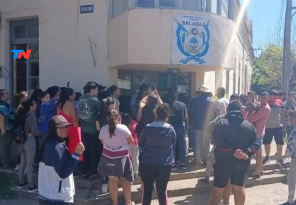 El hecho generó una fuerte reacción en la comunidad. Vecinos del barrio Centenario y de distintos sectores de Saladas se concentraron frente a la comisaría local con carteles y quema de cubiertas, reclamando respuestas inmediatas.