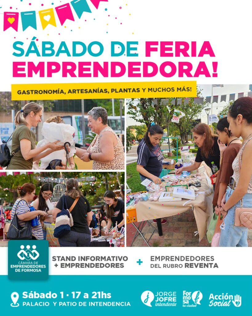 Como todos los primeros y segundos sábados del mes, el corazón del municipio de Formosa se prepara para recibir una nueva edición de la Feria Emprendedora, organizada por la Secretaría de Acción Social. El evento tendrá lugar frente al Palacio de Intendencia cito en calle San Martín esquina 25 de Mayo, a partir de las 17 horas, de este sábado 01 de noviembre, y promete ser una experiencia ideal para disfrutar en familia.