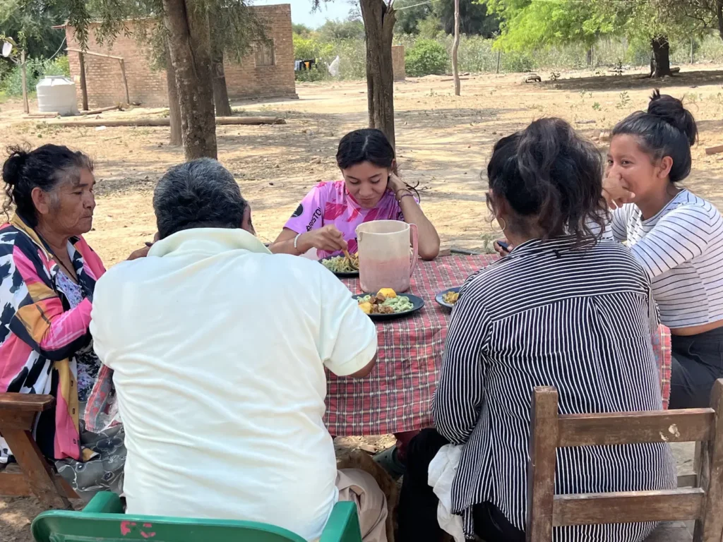 Solo dos jóvenes de San José terminaron la secundaria y se lanzaron a la epopeya de seguir estudiando: Ramiro, el hermano mayor de Romina, y Betty, que hoy tiene 25 años. Acompañada por APCD, esta última se mudó a Las Lomitas para ser profesora de física y química, pero no pudo seguir y se volvió. —¿Qué fue lo que más te costó? —Mucho gasto. No tenía plata para la comida, los libros y las cosas que pedía el profesor. Tampoco tenía zapatillas. Los jóvenes que se quedan en la comunidad trabajan como peones rurales, haciendo ladrillos o migran para buscar trabajo en el norte o en el sur del país y se van por temporadas. Las mujeres son amas de casa, hacen artesanías o trabajan en tareas de limpieza. Son las 6 de la tarde y Romina vuelve caminando de la escuela. Deja la mochila en su cuarto y se acerca a lo de sus abuelos a tomar tereré con otras mujeres de su familia. En un rato, las adolescentes se van a poner a jugar al fútbol, pero ella dejó de hacer ese deporte desde que se le salió el hombro en una jugada cuando era chica. —¿A la noche comen algo? —A veces comemos algo. —¿A qué hora te vas a dormir? —A las 11. —¿Qué es lo más lindo de la vida en el monte? —Vivir con la familia. —¿Qué te gustaría hacer cuando termines la secundaria? —Quiero seguir estudiando para enfermería o puede ser obstetra. —¿Por qué? —Porque me gusta ayudar a las personas que lo necesitan. —¿Eso dónde se estudia? —En Formosa capital. —¿Cómo fue cuando se fue tu hermano? —Muy difícil. Mis abuelos no querían que se fuera, pero él sí quería ir. Y ahora ya se recibió allá. —Y eso a vos te anima para decir ´yo también puedo´. —Sí. —¿Qué pensás que es lo que más te va a costar si te vas lejos? —Acostumbrarme a estar sola porque yo siempre estoy con mi familia.
