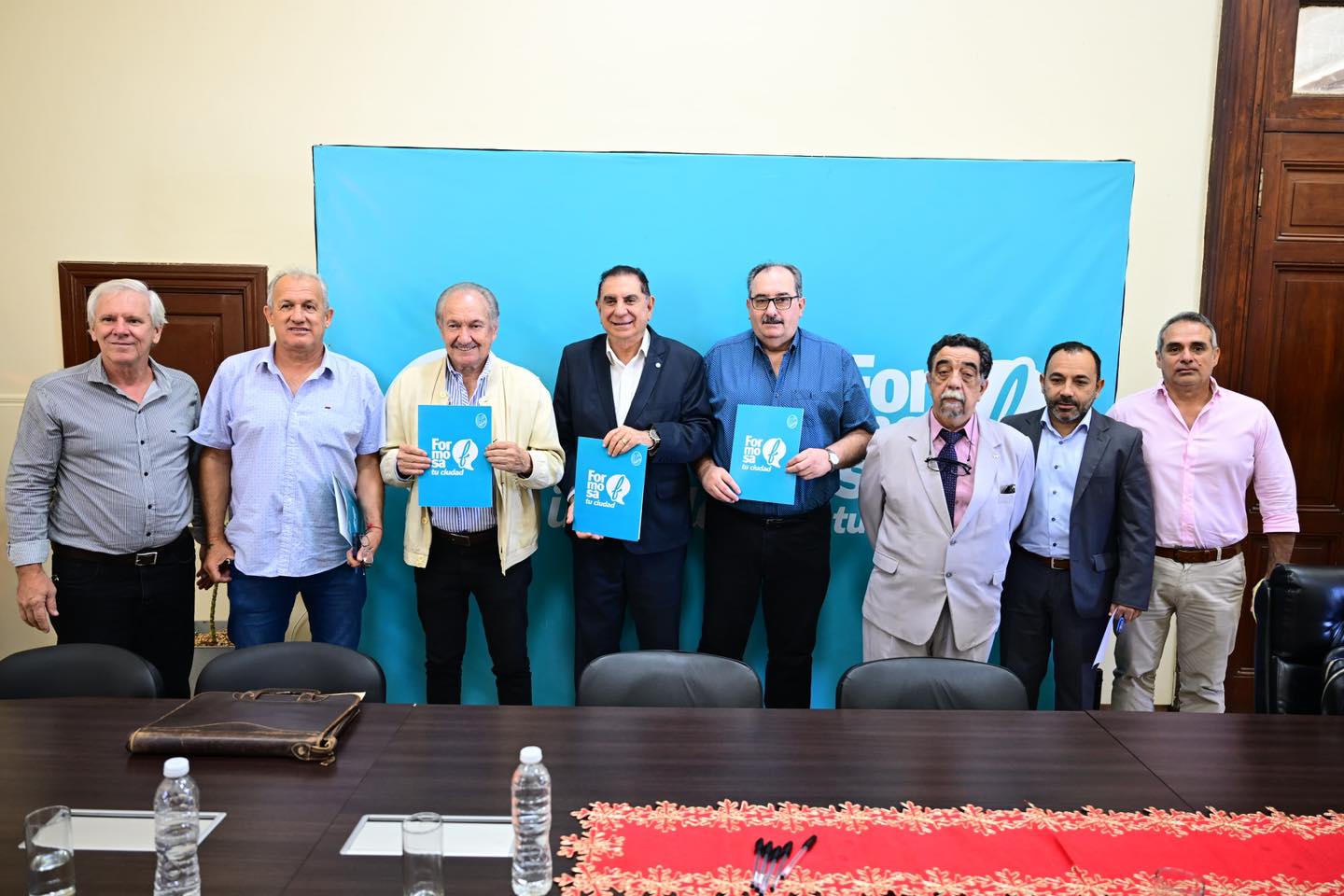 Firmaron el documento, junto al Jefe Comunal, el presidente de la Federación Económica de Formosa, Cdor. Enrique Zanín; el presidente de la Cámara de Pequeñas y Medianas Empresas de Formosa, Carlos Werlen; el secretario General del Centro Empleados de Comercio, Aníbal Alarcón.