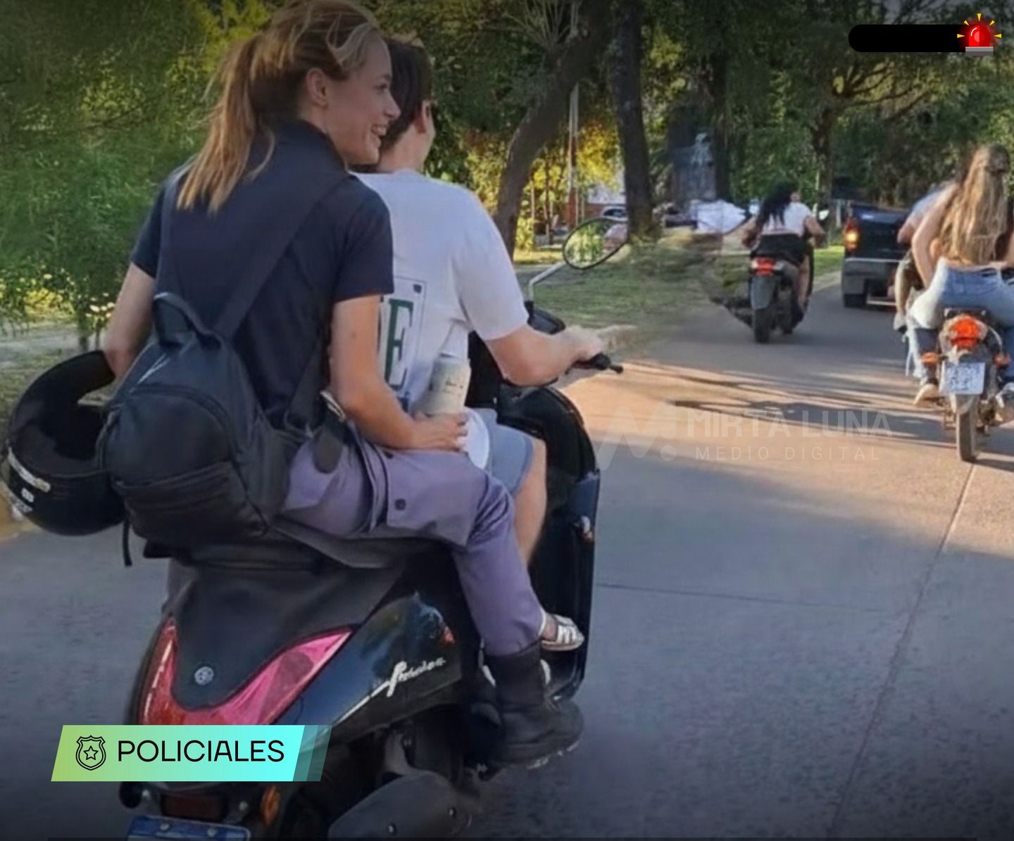 Según el informe oficial, en la imagen se observa a una persona de sexo femenino circulando como acompañante en una motocicleta, vistiendo uniforme policial, sin casco de seguridad colocado y sosteniendo en su mano lo que aparenta ser una lata de cerveza. El material fue difundido por el portal de noticias Alerta Urbana.