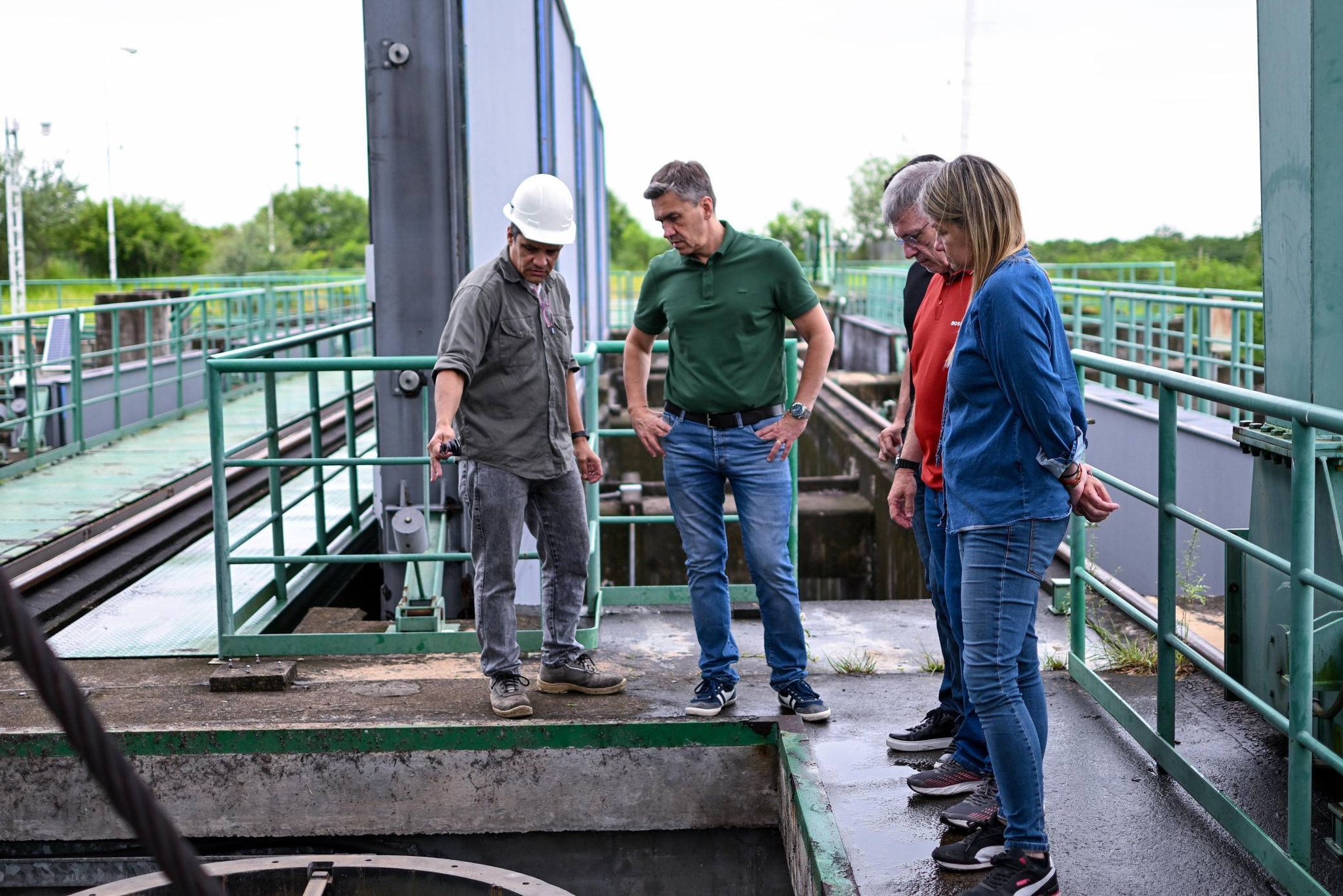 El recorrido incluyó el Dique y la Estación de Bombeo del Puerto de Barranqueras, así como el Reservorio Sur de Puerto Vilelas, en el sector del Canal de Soberanía, puntos claves para facilitar el escurrimiento del agua y reducir el impacto de las precipitaciones en los barrios más vulnerables.